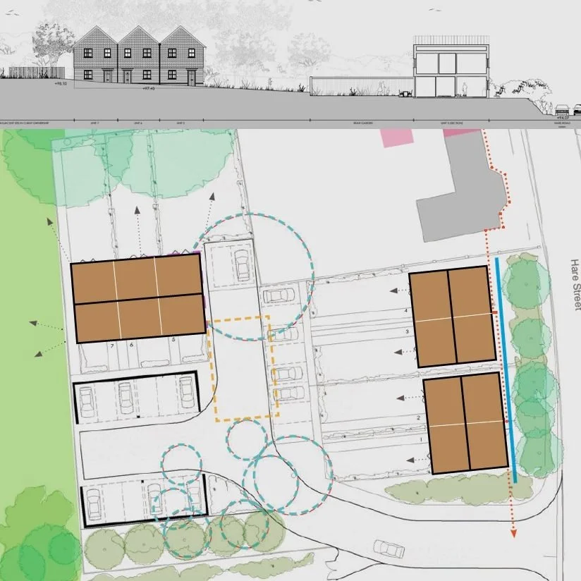 Contour Planning have submitted a full planning application for the erection of 7 No. houses on an infill site in the East Herts village of Hare Street, approximately two miles east of Buntingford.